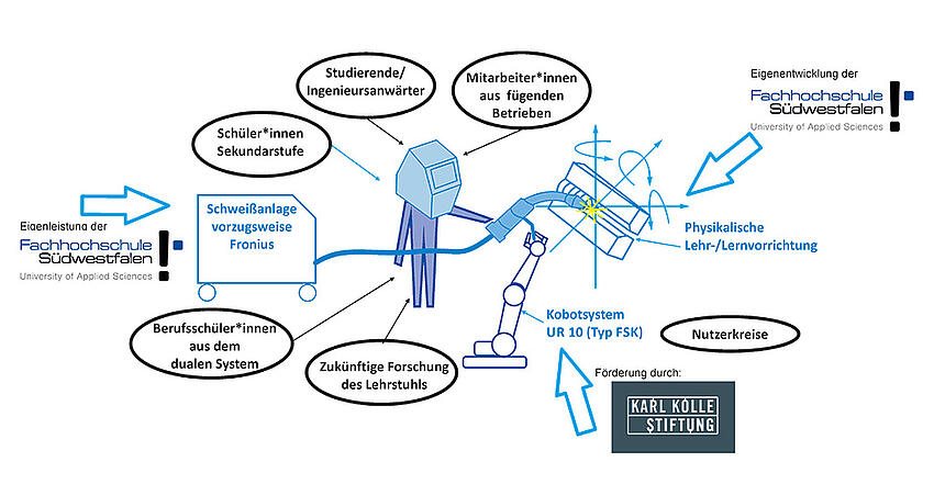 So können Nachwuchsschweißer ohne eine ständige aufwendige 1:1 Betreuung durch Lehrschweißer die handwerklich aufwendige Fertigkeit am Prozess erfahren. Gleichzeitig werden junge Menschen durch den Einsatz interessanter Automatisierungstechnologie für den Beruf des Schweißers motiviert und auch im Bereich (Schweiß-)Automatisierung qualifiziert.