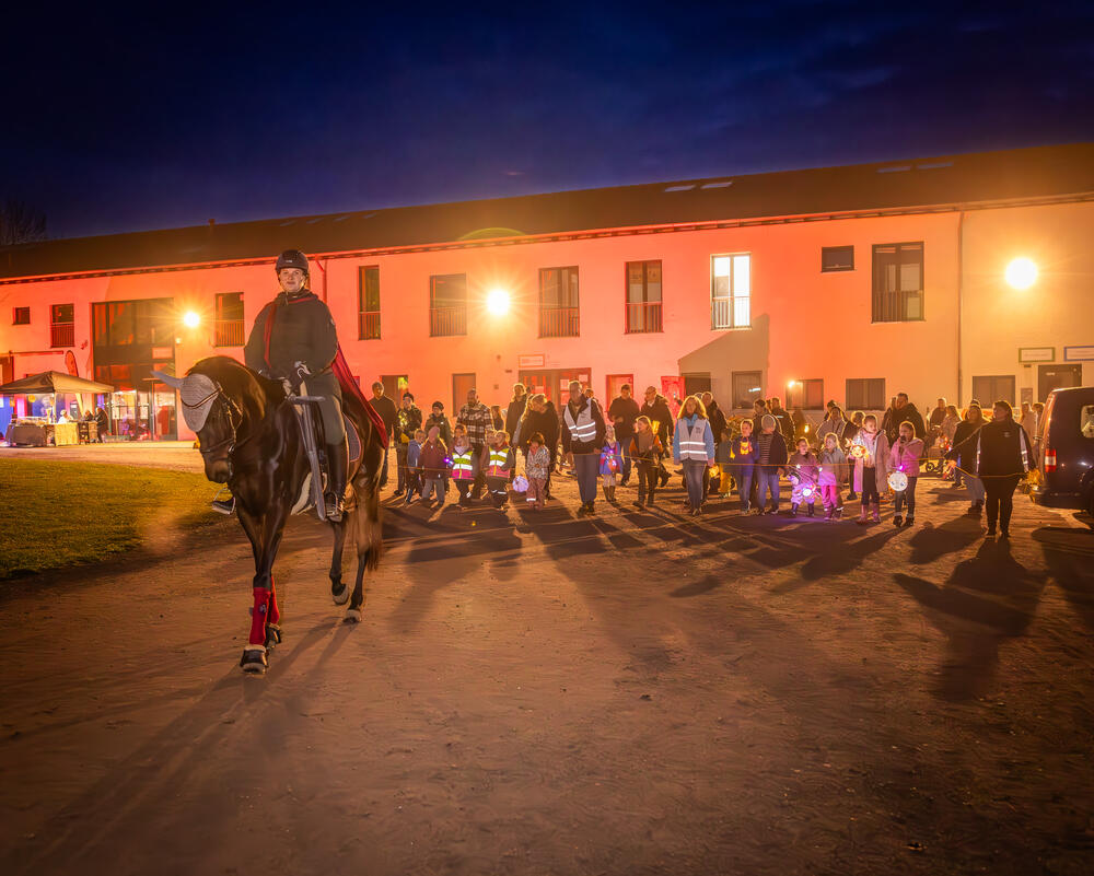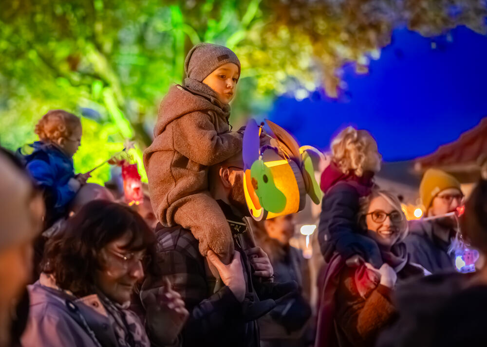 Gut Königsmühle erstrahlte an diesem Abend in eindrucksvollem Lichterglanz: Die stimmungsvolle Beleuchtung, hunderte bunte Laternen und ein großes Lagerfeuer leuchteten mit den Kinderaugen um die Wette. Viele Familien hatten zuvor mit viel Kreativität ihre Laternen gebastelt. Es entstanden fantasievolle Lichtobjekte, manchmal sogar aus nachhaltigen Upcycling-Materialien.
